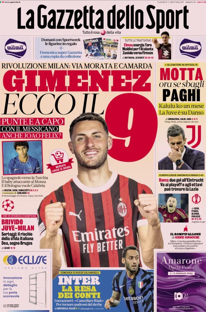 Queste le prime pagine dei quotidiani sportivi in edicola oggi...