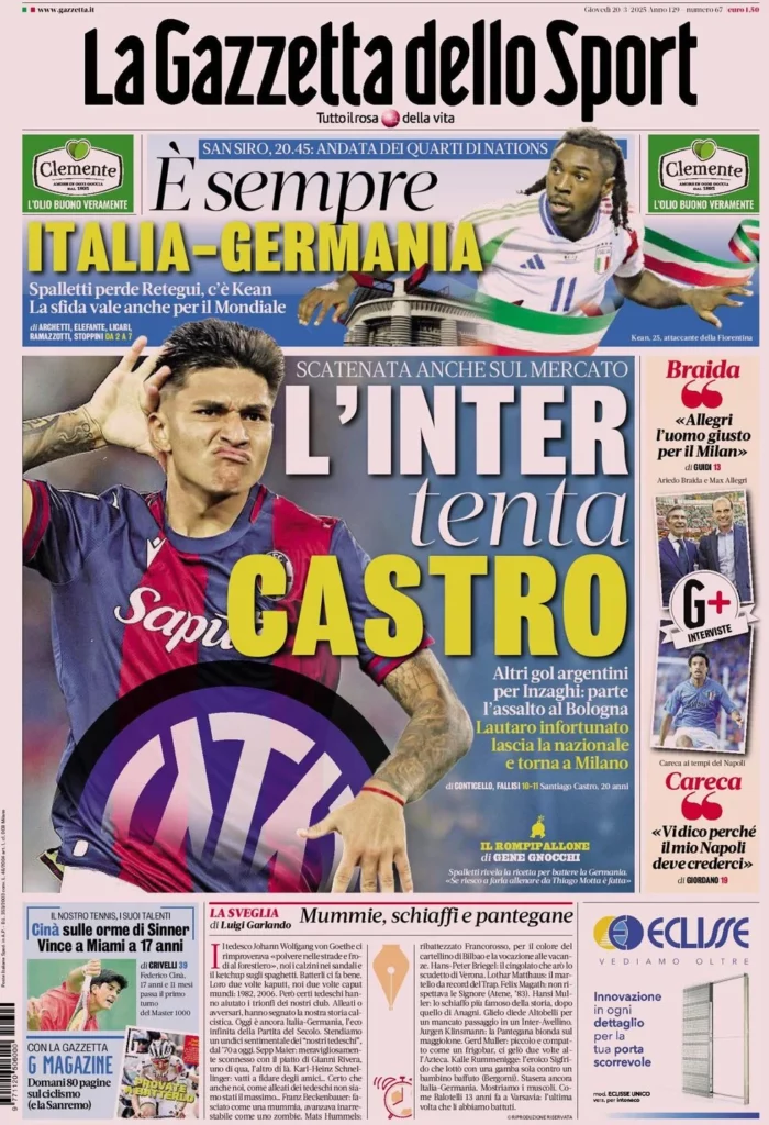Queste le prime pagine dei maggiori quotidiani sportivi in edicola oggi...