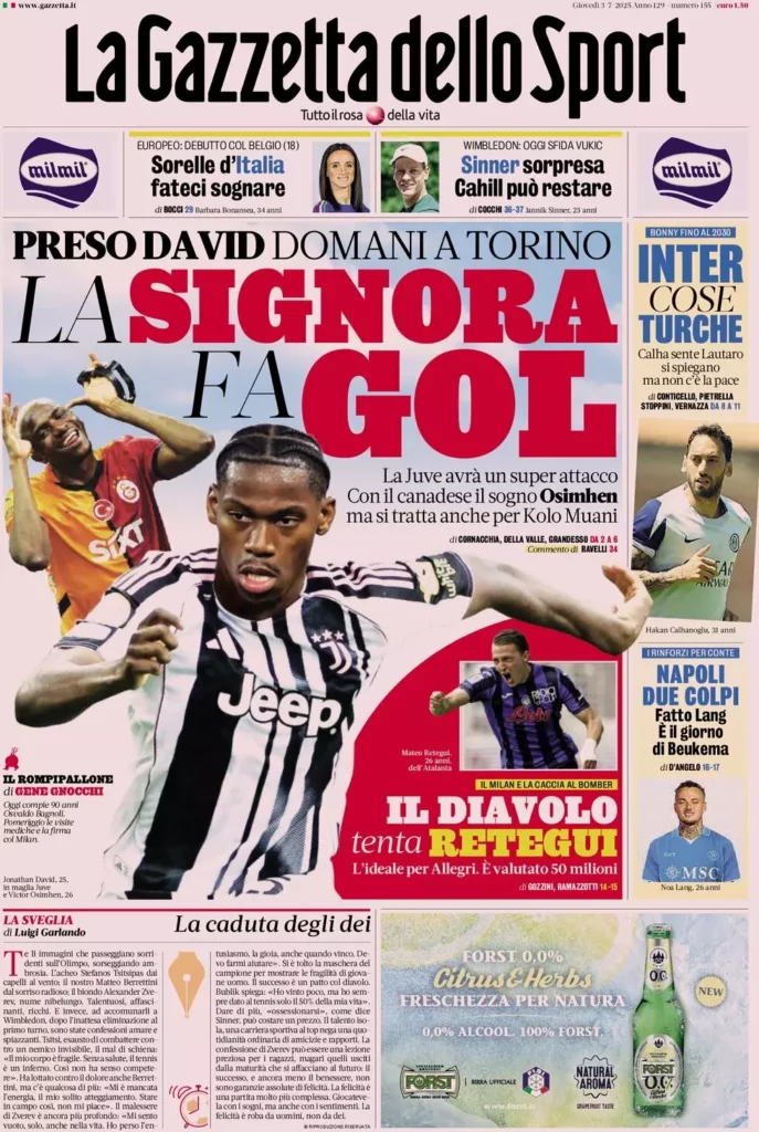 Queste le prime pagine dei maggiori quotidiani sportivi in edicola oggi...