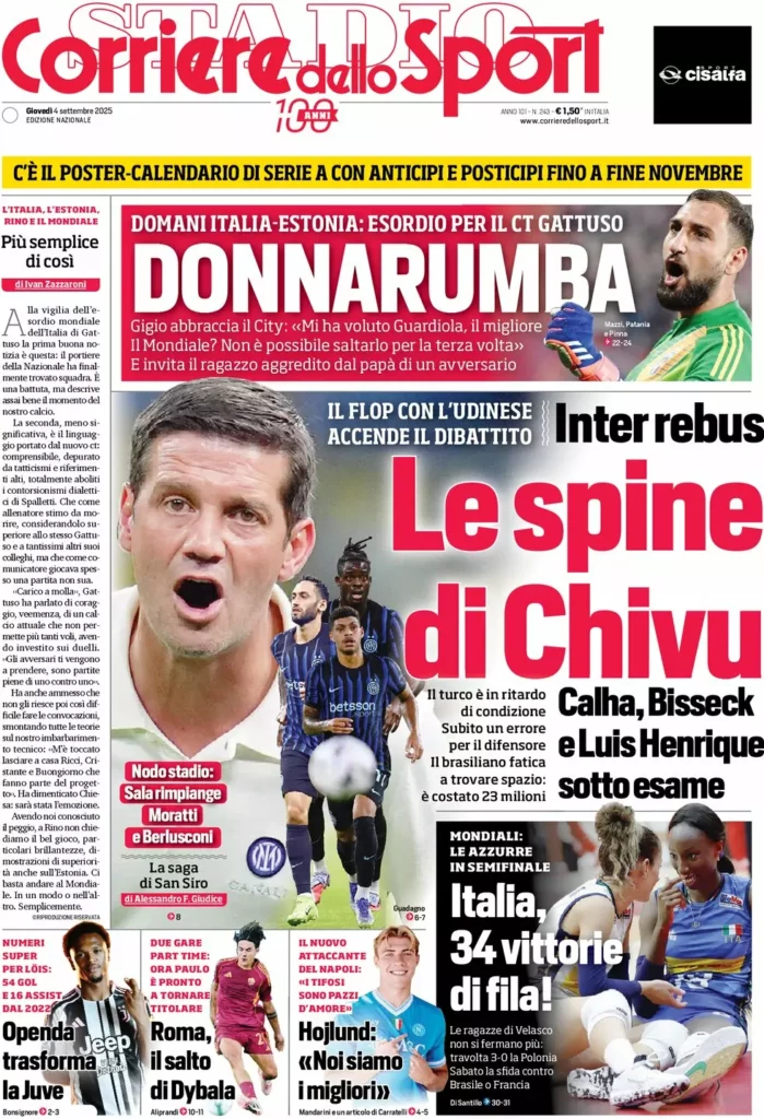 Queste le prime pagine dei maggiori quotidiani sportivi in edicola oggi...