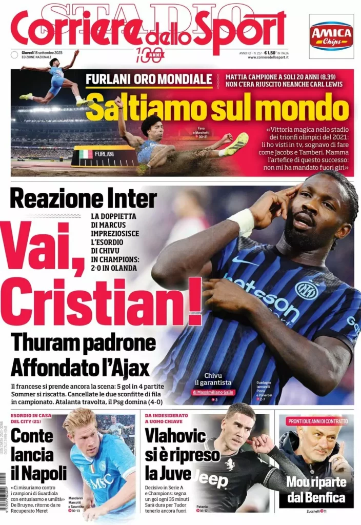 Queste le prime pagine dei maggiori quotidiani sportivi in edicola oggi...
